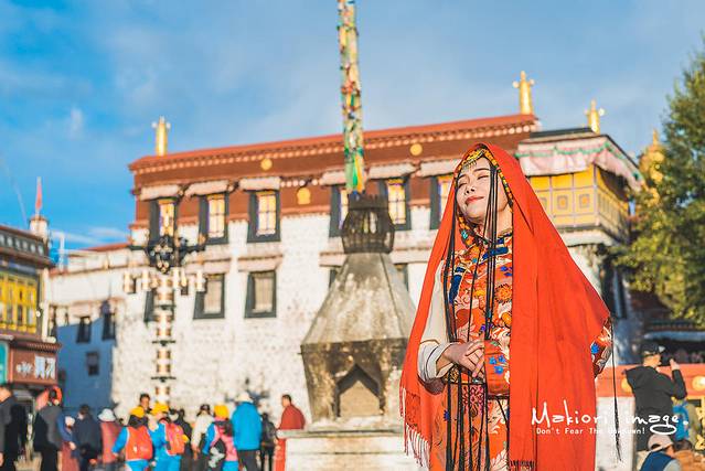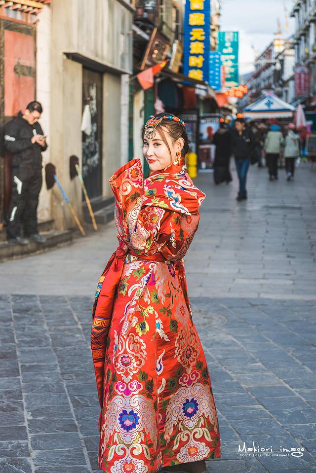 八廓街如今也成为了拍婚纱和写真的好去处,几年下来,越来越多的妹子都会想来拉萨拍一套藏族写真,混迹于虔诚的藏民之中,虽然多少有些格格不入,但还是成为了一道靓丽的风景线,走哪都成为了人们的焦点。