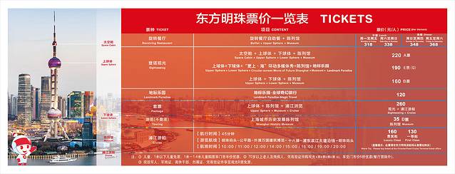 东方明珠电视塔门票一览表,点击查看大图