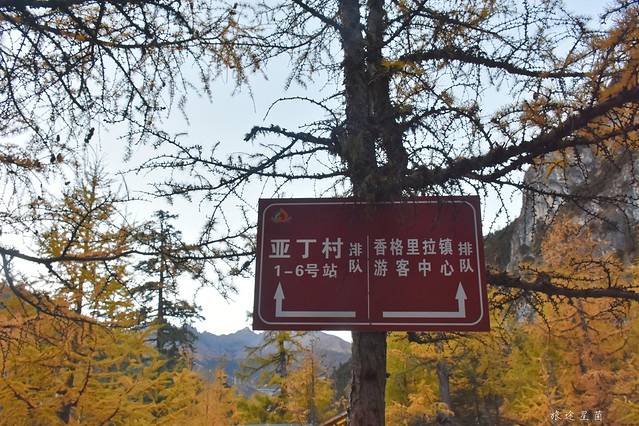 返回的时候坐大巴车,看清指示标识,分“ 亚丁 村”和“ 香格里拉 游客中心”排队乘车。