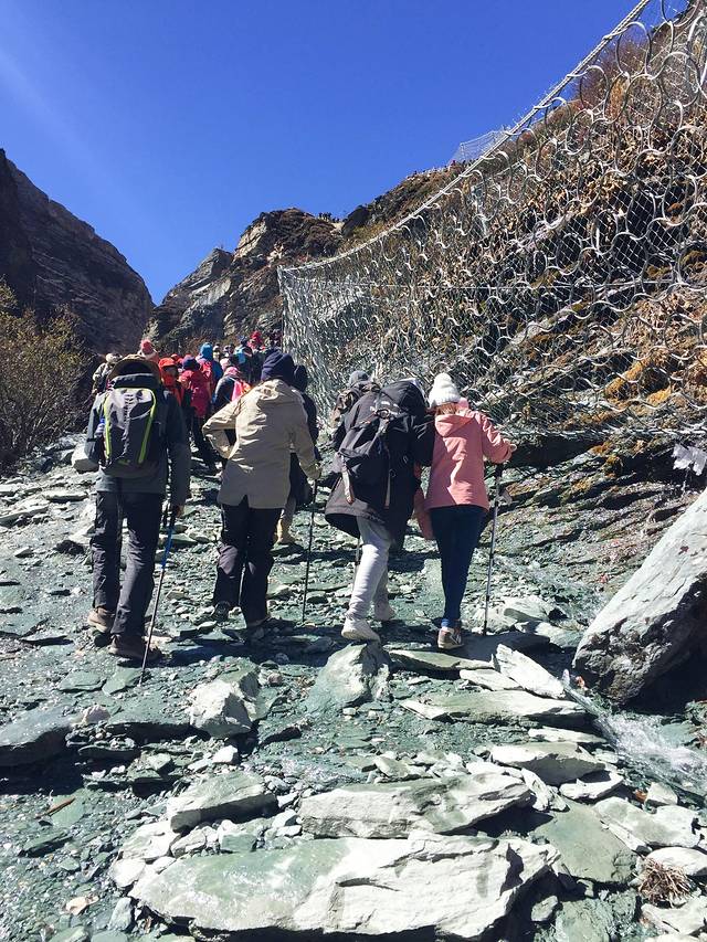一路和同伴调侃,我们从雪山脚下爬上去,能够爬到终点,以后就可以吹嘘自己是爬上半个珠峰的人啦(当然珠峰比这个要难爬很多)。