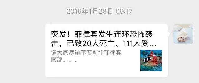 一月底的时候看到了一条关于“菲律宾发生连环恐怖袭击”的新闻,考虑到鹏哥比较惜命,任何有危险的让自己感到不安全的事情都是有多远躲多远,我担心他会打退堂鼓,开始给他各种吃定心丸,没想到这次他这么淡定,反而安慰我。菲律宾南部一直比较乱,也是旅游禁区,正常的旅游地还是很安全的,所以没必要担心。
