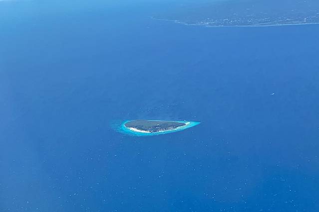 杜马盖地的机场紧邻大海,飞机降落的时候像是在海面上飞行一样。