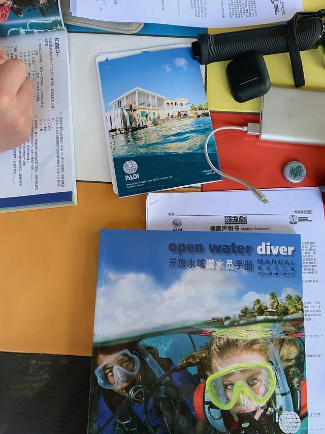 白天玩嗨了,晚上就要加班加点补课了。总共五个单元的课后习题,做完之后,教练跟我们对答案,有点儿像上学时候做试卷的感觉。我们找的是中文教练,毕竟潜水不是小事,英文的话知识点搞不清楚,下水就麻烦了。