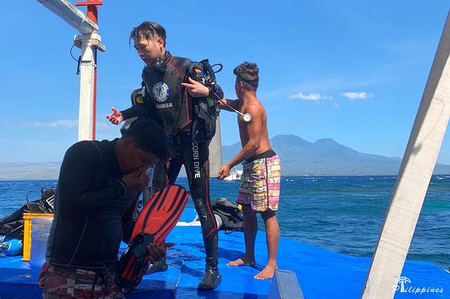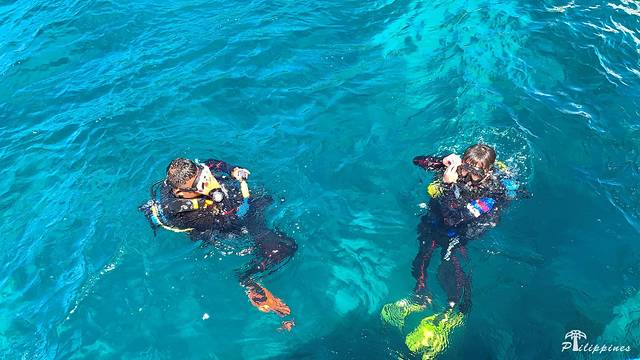 和我们同船的有一个去年考过AO的女生,是找了一个潜导带她,她下的地方浪挺大的,我担心我们这种考生的阻力大,事实证明我想多了,她下的地方是流比较大,和我们的潜点不同,我们又往前开了几公里,到了同船其他游客浮潜的区域,水清澈见底,也没什么浪,才算放心。