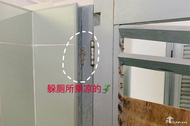 上个卫生间也能受到惊吓,一抬头看到了一只壁虎。