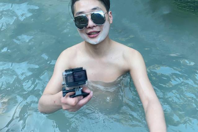刚开始因为脚伤,不敢下,因为这个野温泉是天然火山的硫磺形成的,有股下水道的气味,担心不干净对伤口不好,结果我土鳖了,不知道这能消炎杀菌。下去的时候伤口虽然很蛰,但忍着疼过去就不疼了,再一个可以提前感受下泡海水的疼痛感,心里也好有点儿数。泡到最后都不想出来了。