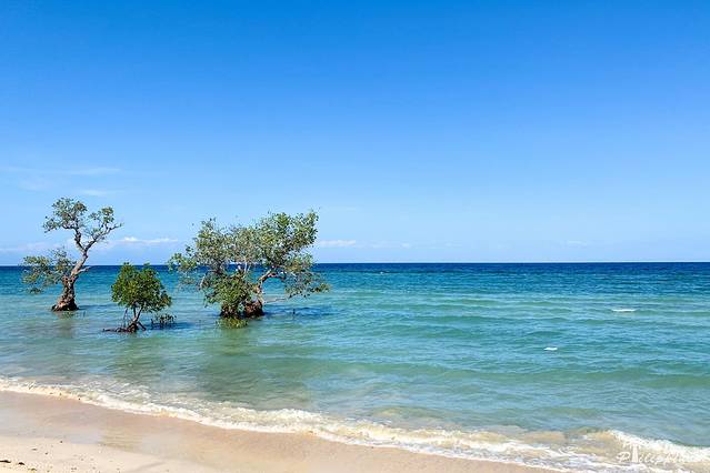 这里的海水近处呈美丽的果冻色,远处是明亮的蓝宝石色,站在大礁石上180俯瞰海滩很壮观。