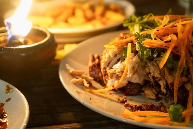 用篝火烤出来的鸡肉,肉质里会带有柴火的香味