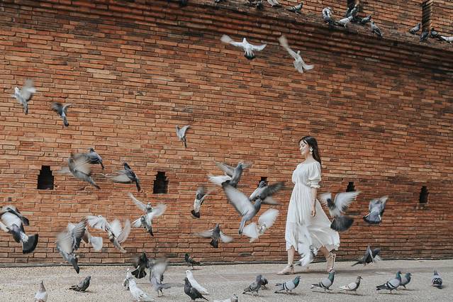 水灯节前后,塔佩门广场这里一直都是悬挂彩灯笼的,选择好前景,即使不去拍鸽子,也能拍到好看的照片~
