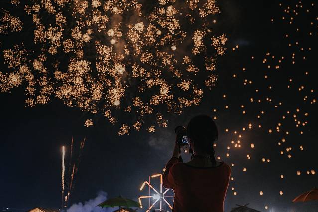 由于齐放天灯的场面十分震撼,吸引了世界各地旅行者的目光,便逐渐演变成为人们想要共同庆祝的节日。对了,它也是泰国的情人节,每年泰历12月15日便是水灯节举办的时间,就像我们的七夕节一样,年轻的小情侣们会相约在这样浪漫的氛围中,许下天长地久的心愿。