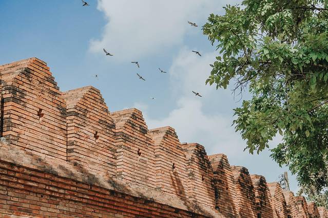 清迈古城建于1296年,由曼格瑞统治期间建成,据说当年城墙有两米高,围合出一座正方形的城池,历史的车轮不停歇,经历风雨沧桑的城墙,如今只留下部分遗迹,但这也成了它独有的美丽