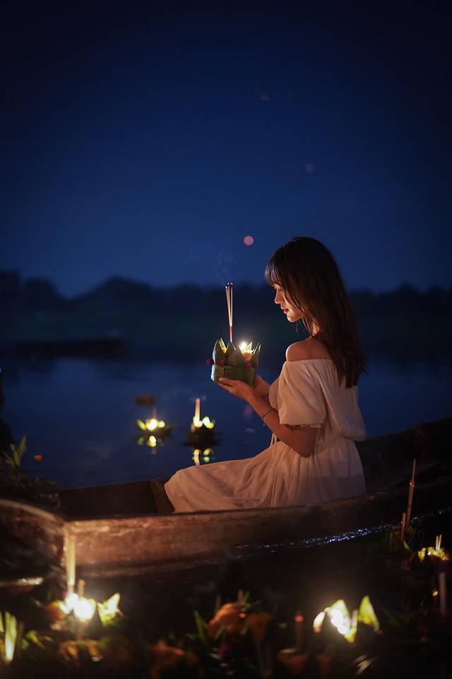 捧起水灯,寄予祝福与祷告,伴着僧侣们的诵经声,将它送到远方