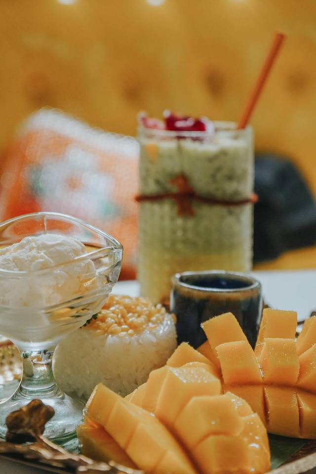 芒果糯米饭端上来的时候还是热的,配上椰汁和冰淇淋的口感,真的很妙