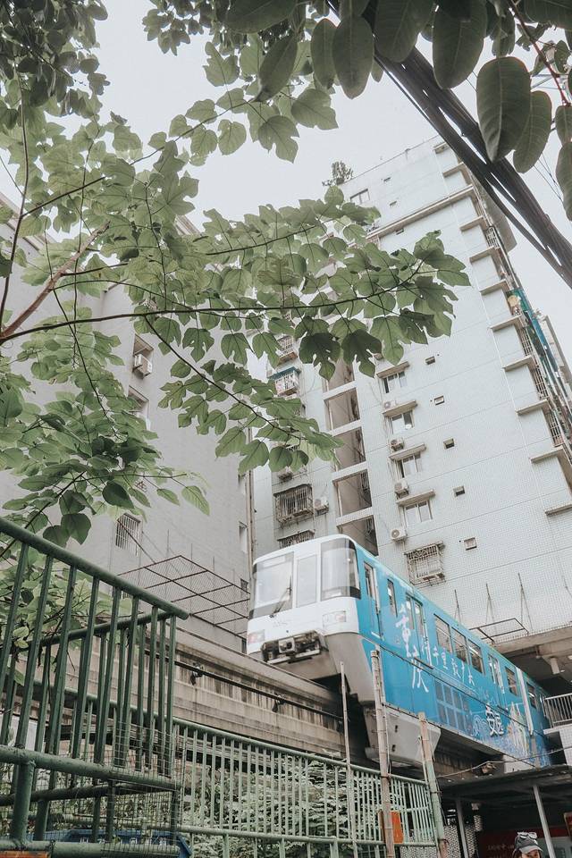 作为重庆轻轨界的大网红,好像不来打个卡就跟没来过重庆一样,没错,就是那个穿楼而过的轻轨。