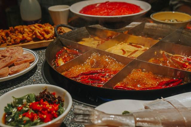 重庆火锅的特色,“辣”这个字必然跑不掉。“辣”在火锅里是一种颜色——红,红得热烈、红得滚烫,这一抹红早已随着那翻滚的汤,注入每一个重庆人的血液中,铸成了他们直爽豪迈的性格。