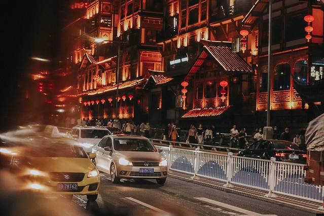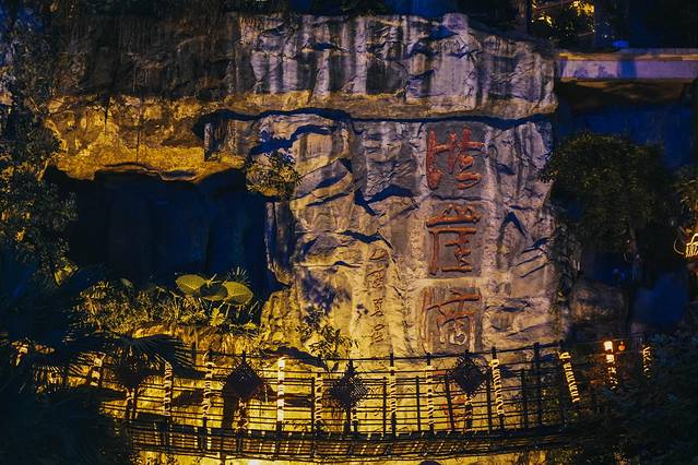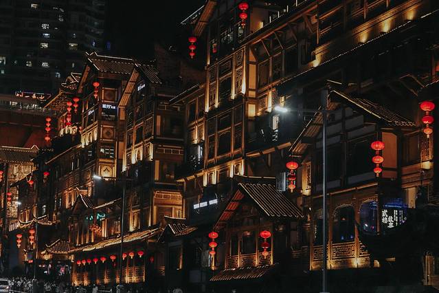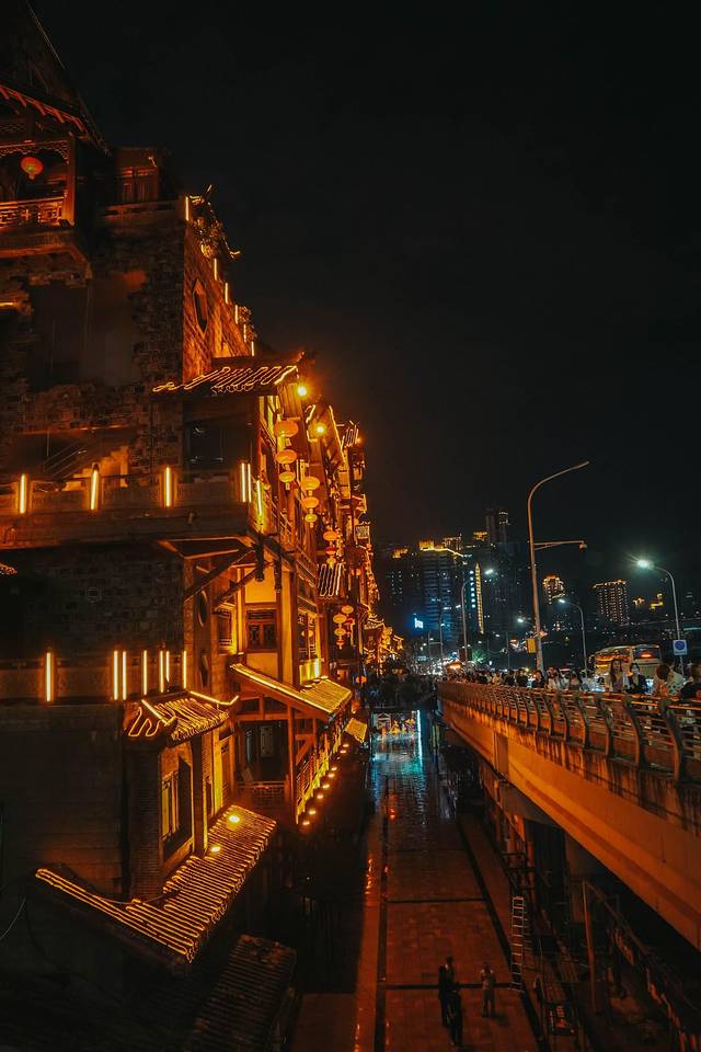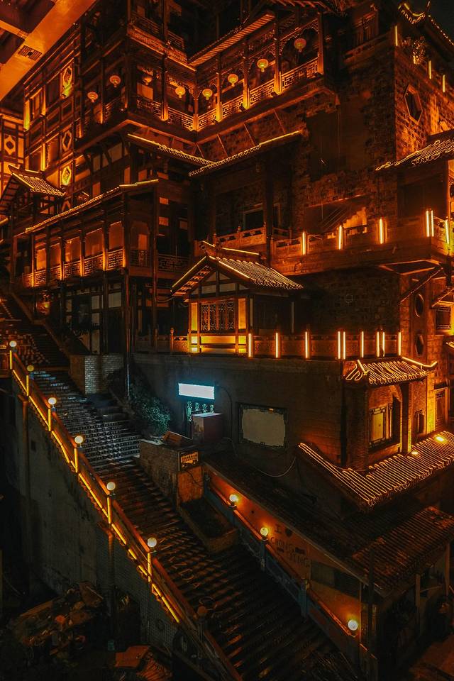 白日时只看楼宇重重叠叠,不觉稀奇,到了晚上华灯初上,只是远眺望过去那一片灯火通明,好似有红灯笼摇曳着将人从现实撞入千与千寻里的灵异小镇中,才让人惊叹出声。