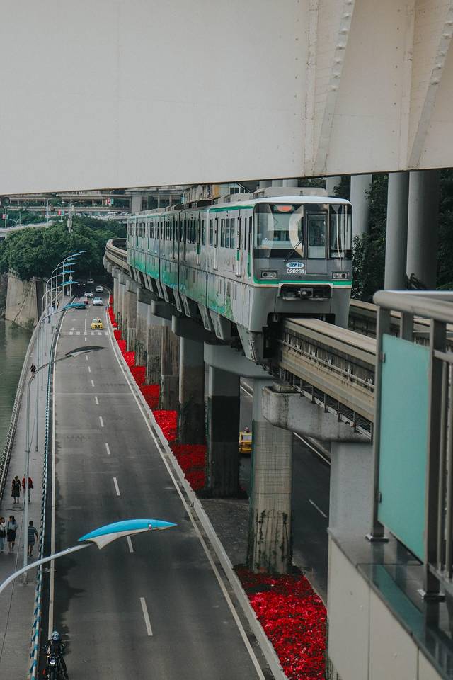 穿梭在纵横交错的高架桥和隧洞之间的重庆轻轨,城市间的忽高忽低、起伏变化都随着轻轨延展而来。