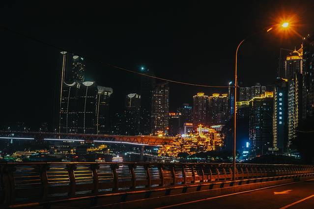 如果远看洪崖洞,重庆的地形完美地烘托出了建筑本身的灯光效果,再加上千厮门大桥的衬托,拍照几乎是全方位无死角出片,只是我去的时候因为重庆正在从40年最大洪水过境的灾害恢复期,千厮门大桥并没有亮灯,所以算是为下次前往铺垫了一点遗憾。