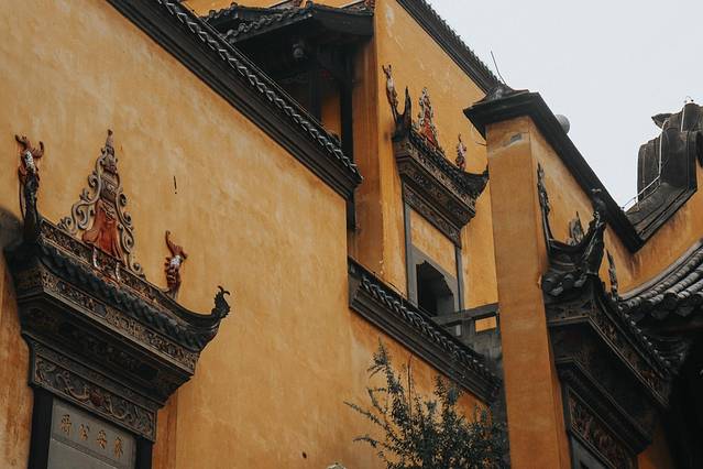 齐安公所是重庆湖广会馆建筑群里是保存得最为完好的建筑,这里有最为完整、精美的戏台,戏楼周围的精致木雕当中,有两幅浮雕分别反映了移民祖籍地和居住地的环境,意义深远,看完戏台恍惚然间有点戏如人生的感觉。