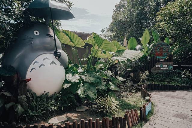 龙猫是宫崎骏笔下非常经典的动漫形象,憨厚温暖的样子非常可爱,看一眼就挪不开视线,只想上前抱一抱它圆圆大大的肚子,在花园里到处可见龙猫的身影,有的慵懒着靠在墙壁,有的就躲在树木绿植里,小路上草丛里大大小小隐匿其中,每发现一只龙猫都是一个惊喜。