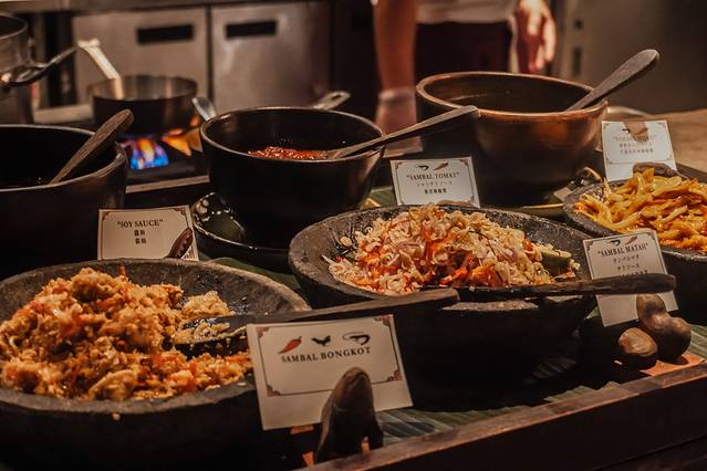 因为赶上巴厘岛的新年,赶上最隆重的一次表演活动,Kampoeng Bali 餐厅每周单日营业,算是酒店最特色的餐厅之一了,在这里能最好的感受传统的巴厘文化,除了地道美食,精彩的克差舞,以及手工艺品集市,最大限度的呈现了巴厘特色。