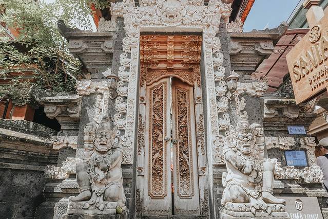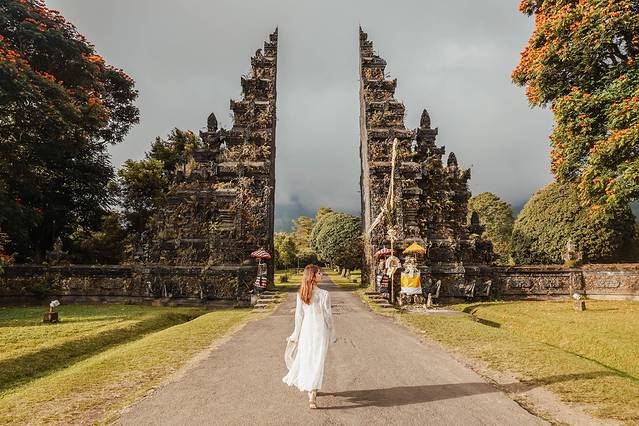 在巴厘,大型庙宇的出入口都是由精雕的分隔大门构成,称为善恶之门,犹如被劈开的圣山。门的两侧各自矗立着守护神,分别代表善与恶。