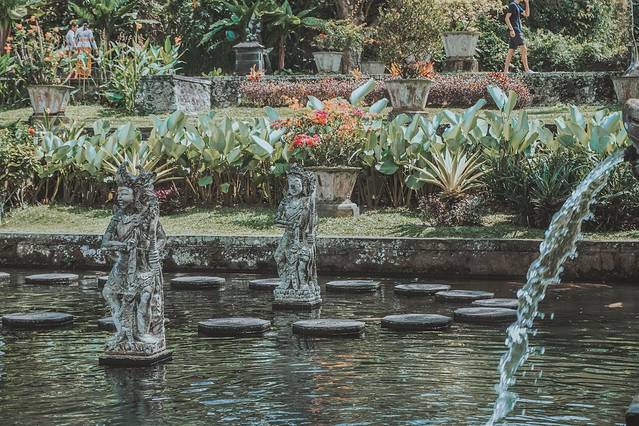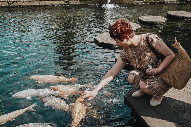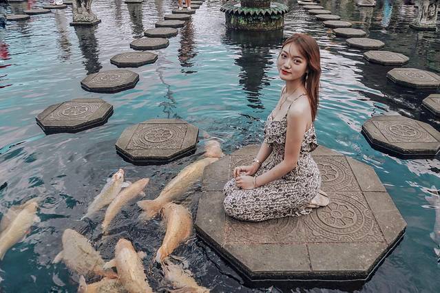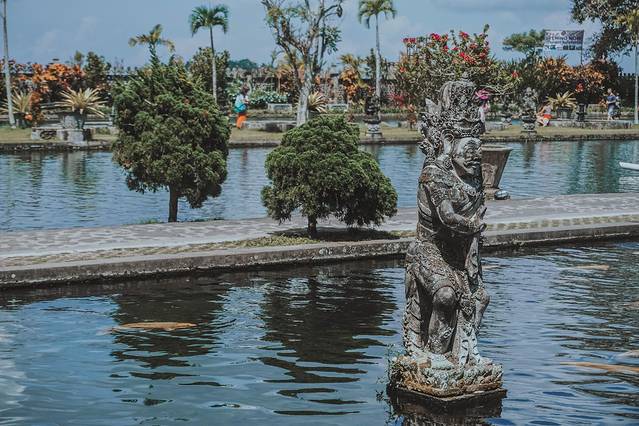 整个王宫花园很大,花园的中心就是一个很大巨型喷泉。并且有不同的神像围城的水中小道用来装饰宽阔的池面,水下还养这不同的锦鲤,大概有几百条,每条都跟成精似的大,花园整个植物布局也是相当的精美,错落有致,置身其中乐而忘返。喂鱼的鱼食在门外的商贩就能买到5000印尼盾可以买三小包。