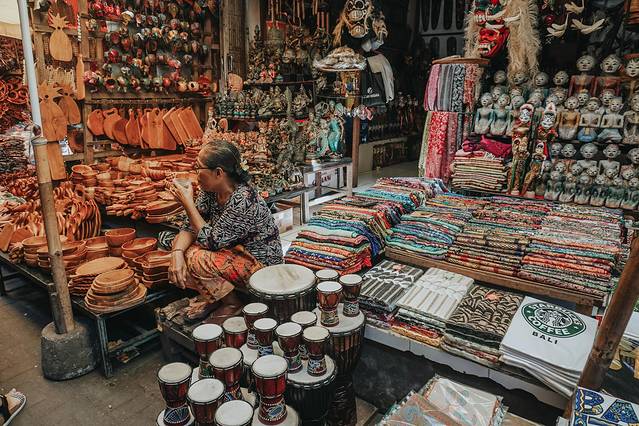 乌布传统市场,是巴厘岛最著名的旅游景点,也被认为是巴厘岛最具有文化气息的地区。但对于一对母女来说,这里最大的意义不过于“买买买”,不仅选择更多,价格也比南部便宜不少。除了手工艺品还有各种服装小店以及舒适宜人的咖啡厅,若是体力好,还可以沿着乡间小路深入探索田园风光。