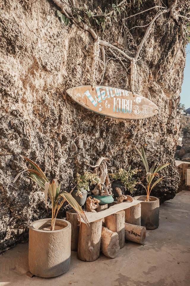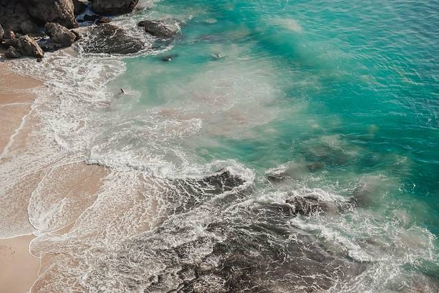 库布海滩是私人海滩,只有酒店住户可以抵达,这里和我之前去过的所有沙滩都不一样,沙滩上巨大的岩石,背后则是高耸的悬崖,俯瞰下去就像袋子里散落出来的黑色钻石。