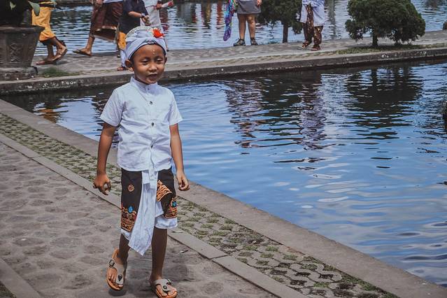 昨天还沉浸在赶上巴厘岛新年的我,今天差点哭出声来,整个巴厘岛的交通在这一天几乎全面瘫痪了,从努沙杜瓦到水上神殿,如果不堵车大概3个小时的车程,然而我们单程就花费了将近5个小时。当地人倾家出动要去各属的庙宇祭拜,他们着盛装,带着手作的糕点贡品,骑着他们心爱的小摩托穿梭在城市乡间。