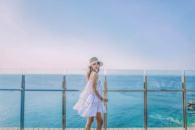 酒店是禁止使用无人机的,想在这里拍些上帝视角,也不是没可能,通往海滩的观光电梯以及电梯下面的露台,都非常适合拍照,但若想拍人像,基本要靠嗓子了,妈妈在露台上指挥我 “向前,向右,向前......”