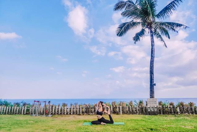 换好衣服出门时,天还是黑着的,天气很给面子不是大太阳天,要不然这场室外瑜伽还真的挺伤。