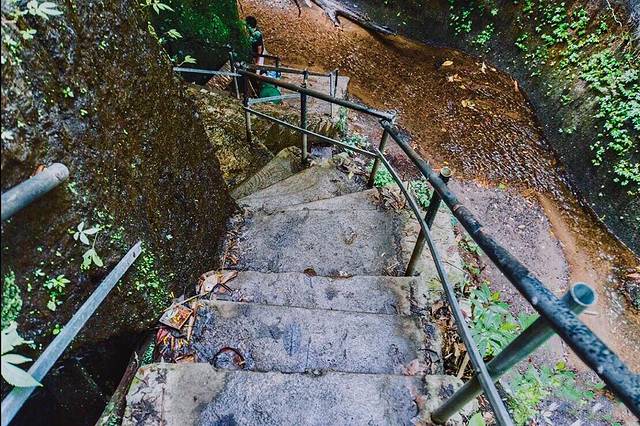 这里是所有行程最考验体力的地方,我们在这没看见一个亚洲人,欧洲人似乎很爱这种野性探险的秘境。从入口进去植被茂盛,台阶比较陡,后半程是溪谷,全程走到谷底需要40分钟,在中途会看见一个更衣室,也是唯一一处可以室内更换衣物的地方,在这里建议换上泳衣,或者提前换好,因为到了瀑布那里是需要在水中行走的,最重要的一点是一定要穿溯溪鞋,当然你脚底像欧洲人一样不怕硌脚就当我没说,真的走到后期每一步都是钻心的痛。(自己穿的鞋不防滑,只能脱在岸边,但距离瀑布还有150m左右,小河道全是砂石和青苔)