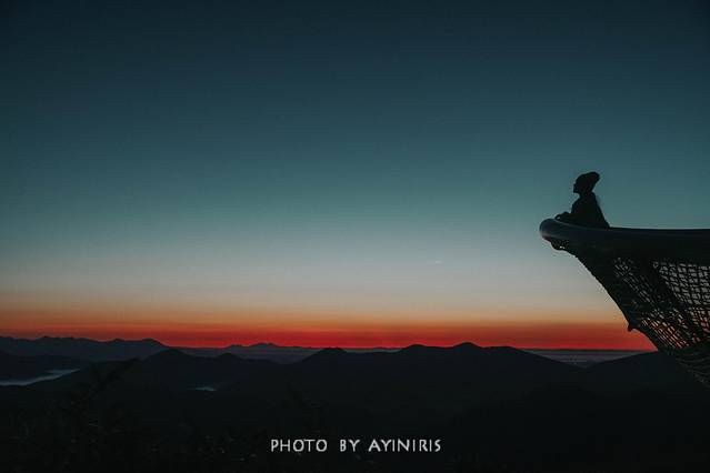 看云海的这天,3点半从床上爬起来,虽是九月末,气温在夜里已是3、4度的寒冷,下楼时,发现有不少人在大厅等候了,赶上第一批登上缆车,那场景煞是恐怖,四周是伸手不见五指的漆黑,坐在微微晃动的缆车厢,不敢睁眼也不敢动,许是10分钟的光景,到达了终点,但若想等顶观云海日出,还要向上攀爬百余米,迎着山风,也不顾寒冷,举着手电顾好脚下,就一鼓作气的向上攀爬。