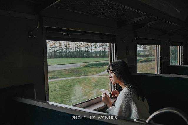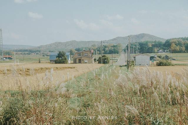 北海道的夏很短,残留的绿被阳光照的明晃晃的,风很轻,只有列车驶过的时候才懒洋洋的忽闪几下