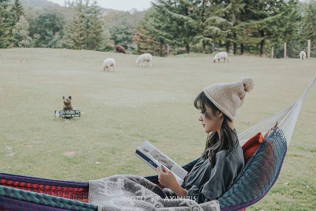「羊儿相伴午睡吊床」是2018年4月份诞生的,在观景地点设置的吊床上,一面数羊一面坠入梦乡,还有什么比这更治愈的呢?