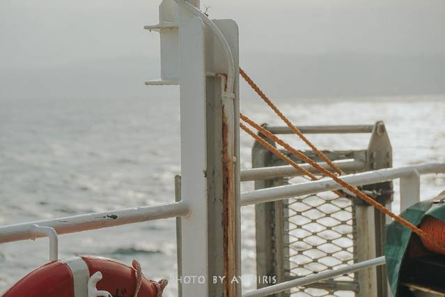 船速就像当地人的慢生活,也是个慢性子,将近两个小时的航程,在海风中吹过,船舱是很特别的地板式,大家席地而坐或着干脆躺下补个回笼觉。但我更愿意守着这一方玻璃窗,看那流动的画面如何串成一个关于海的故事。