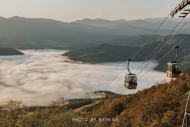 由于特殊的地形和天气状况,云海会发生在并不高大的山间,可以很容易通过缆车到达专门为此设置的云海观光露台,一睹这种壮丽的自然现象。站在这里,俯视群山,浩瀚云海似乎触手可及。