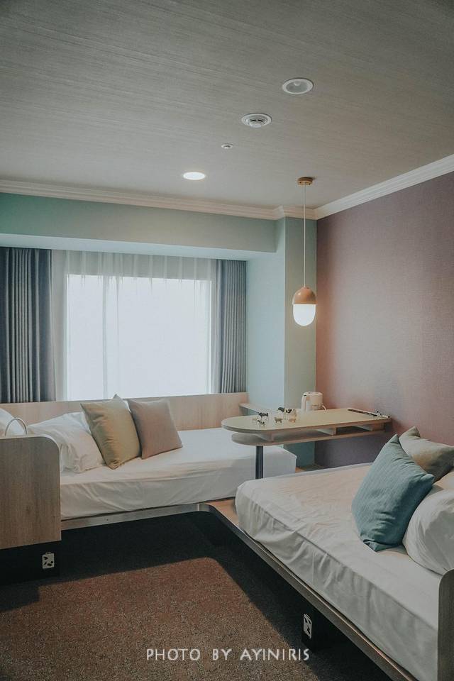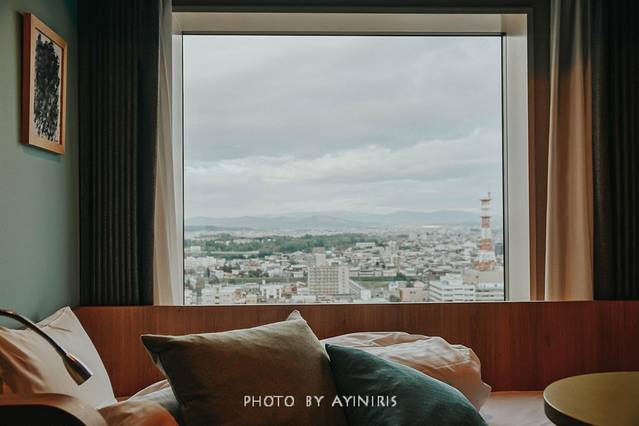 很特别的Daron房型,房间的色彩搭配的恰到好处,最特别的是这个观景窗,几乎能看到城市的全景,它就像一个恰到好处的画框,把天空中的云卷云舒,马路上的车水马龙记录。