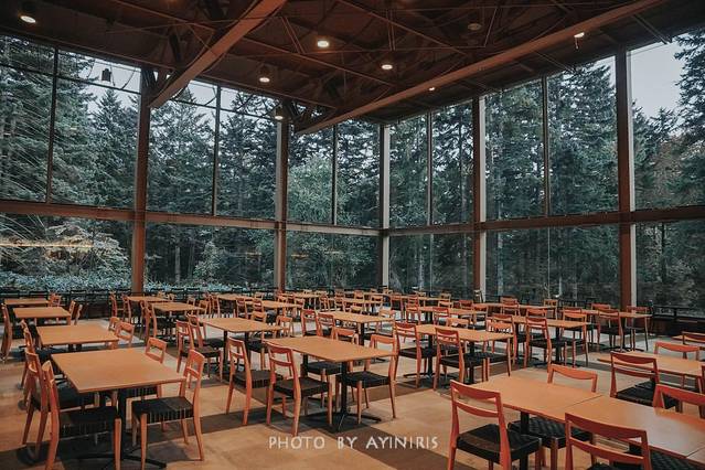 森林餐厅比我想象中更美,全景玻璃落地窗,无论那个角度都能看到外面那壮观的百年松海。
