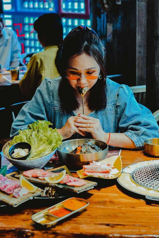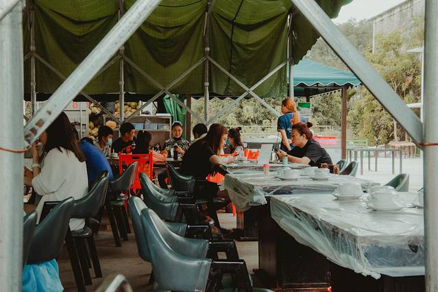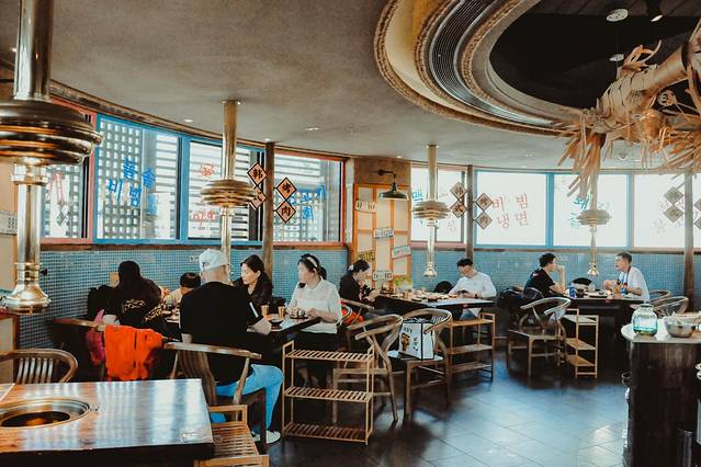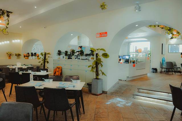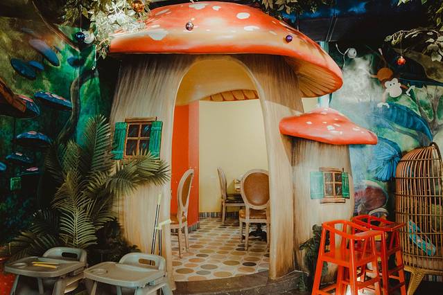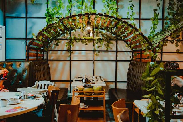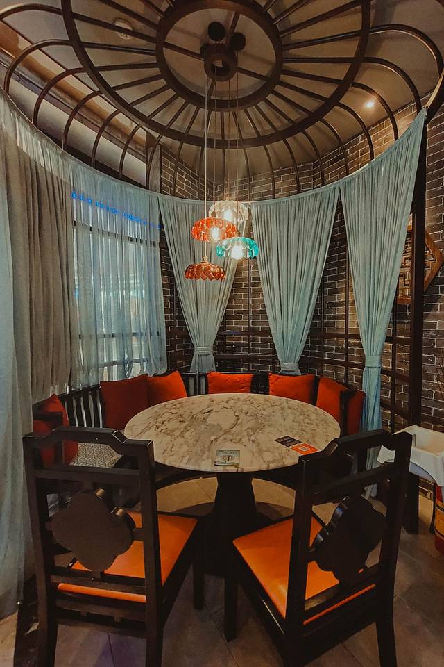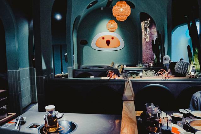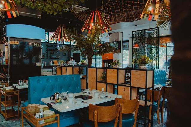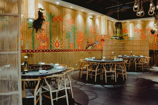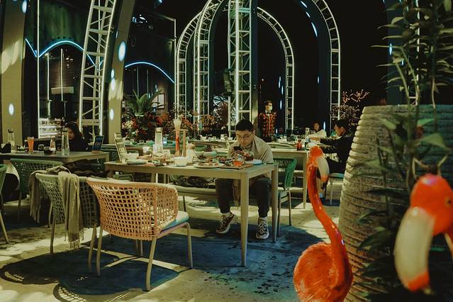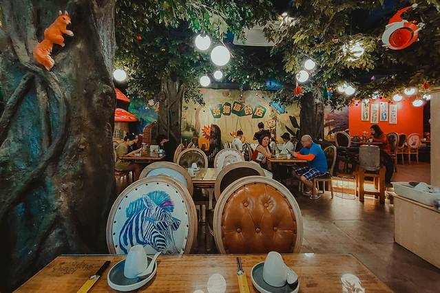 门口的柔和的灯光,白色用餐区域,搭配烟雾缭绕的氛围,可以说一秒穿梭到雨林