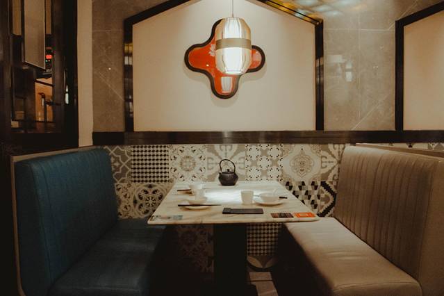 皮质座椅很舒适,连餐具🍽都能感受到淡淡的高级感