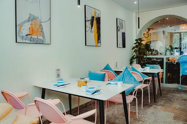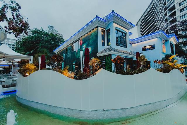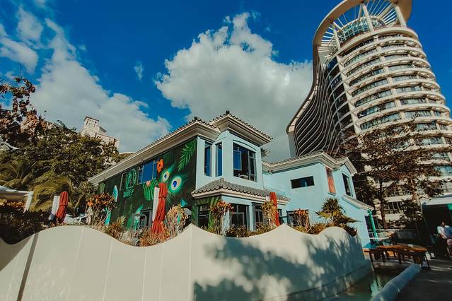 位于三亚湾海角院子的网红餐厅,湛蓝色小楼,清新舒适
