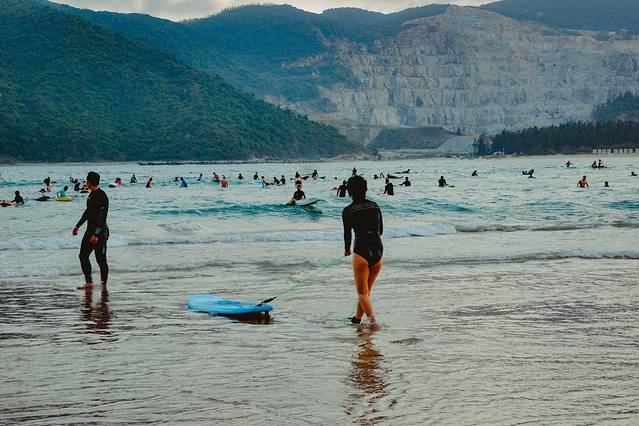5、我到三亚的最重要目标是在后海学冲浪,感受极限运动的魅力。因为后海属于比较温柔的baby浪,所以在这里学相对安全和好上手。当然还是要注意安全,比如我自己其实就崴了脚,但是也不会放弃这个很酷的运动。领悟能力高的,1天也可以学会。