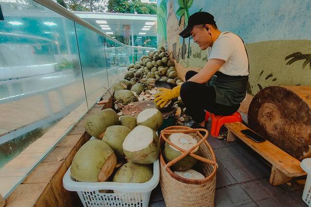 小哥哥服务贴心周到,肉眼可见一大堆椰子🥥随时根据人流量在努力的劈着