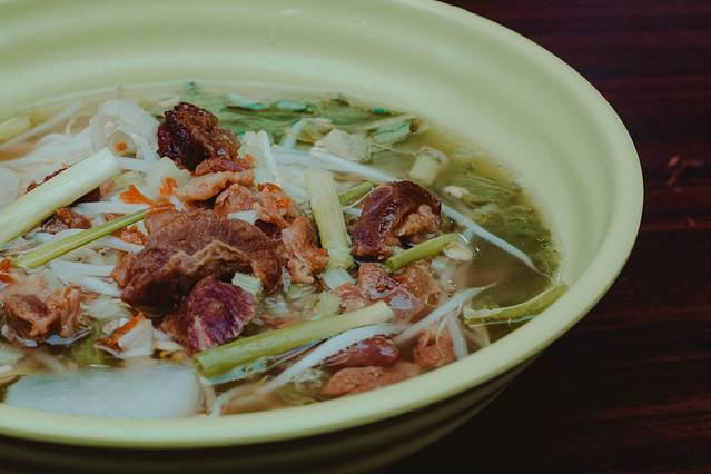 源自海南万宁的小吃,也是海南的名小吃之一,主要原料是猪骨、粉肠、大肠、猪内脏。我吃的这一家属于本地人强烈推荐的,老板能熟悉的记住老顾客的口味。