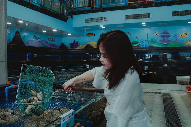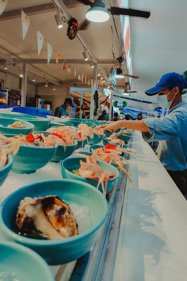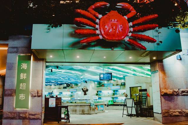 到了达叔家,就会带你去美食街的海鲜超市选择海鲜