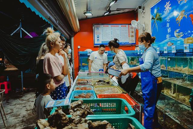 -小海豚海鲜广场:超平价海鲜餐厅,生意火爆,食材品类齐全且新鲜,5km以内可以免费接送,服务好