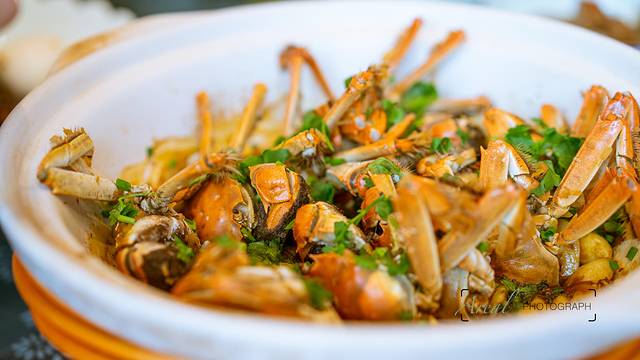 中午在古街上的恬庄人家用餐,恍然大悟之前的各种小吃只是打底。此刻一盘盘江鲜密密麻麻摆放着,桌子几乎失去“呼吸”的空间。