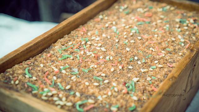 热腾腾的梅花糕不消一刻便出炉了,老板为了方便我们品尝,特意每种味道都做了几个。一个个地被摆进小纸杯中,看上去差不多,但在彩色的青红丝与亮晃晃的糖桂花、芝麻、果仁点缀中宣誓着各自不同地“内涵”。等待热气蒸腾而去,迫不及待地咬上一口,面是宣软地,带着自然发酵的酸香味道,里面因馅料不同而口味不同。肉馅大家公认最好吃,而一向被我诟病得红豆沙(外面制作的红豆沙通常磨的过去软烂且甜度过高)此次却意外获得我的赞许,红豆尚有颗粒状口感,在方寸之间找到最适口的甜度。